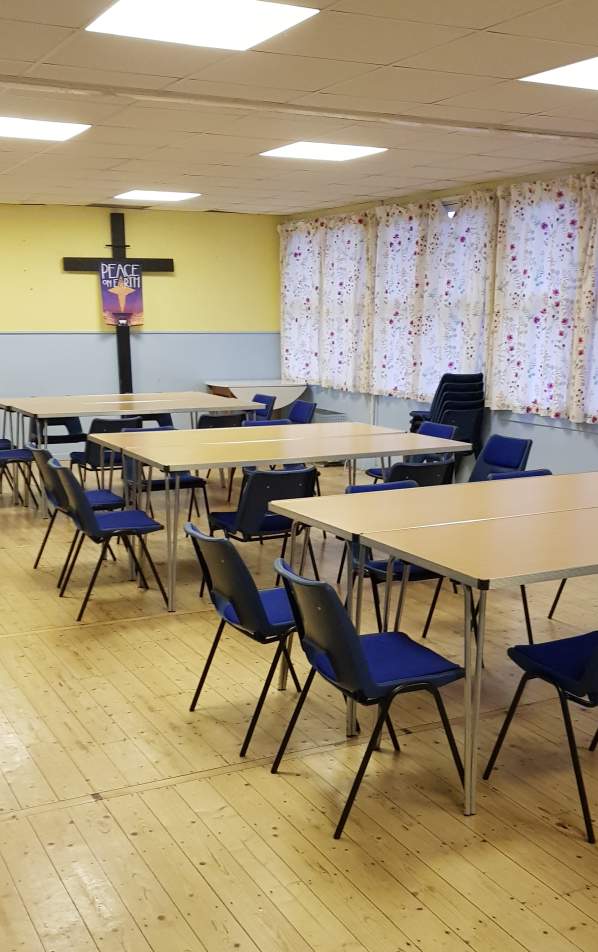 We have a spacious Church Hall which can be used for many occaisions. The hall has two adjoining rooms that are used for storage, an adjoining kitched with a serving hatch and two toilets. One of the toilets being for disabled use. There is a single step from the kitchen area to toilet area however a ramp is placed to ease access and hand holds are mounted.